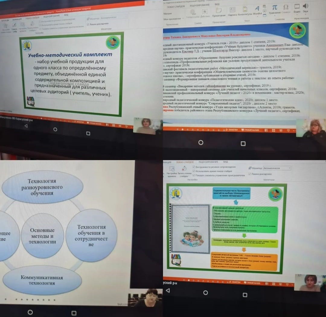 Вебинарға қатысушылардың ерекше назары біліктілік санатын беру (растау) үшін жалпы орта білім беру ұйымдары педагогінің портфолиосын бағалау критерийлеріне аударылды. Оң жұмыс тәжірибесін жалпылау кезінде ажырамас талаптардың бірі болып табылатын мұғалімнің өзіндік әдістемелік өнімін әзірлеу мәселесі нақты қарастырылады. Амангелді жалпы білім беру мектебінің педагогы Е.П. Лапицкая құрастырған бастауыш сынып мұғалімдеріне арналған "Голубая планета" әдістемелік құралының практикалық іске асырылу мысалында вебинарға қатысушылар осы өнімнің оқушылардың экологиялық білімін дамыту шеңберінде мектептің оқу-тәрбие процесінде қолданылуын көруге мүмкіндік алды.