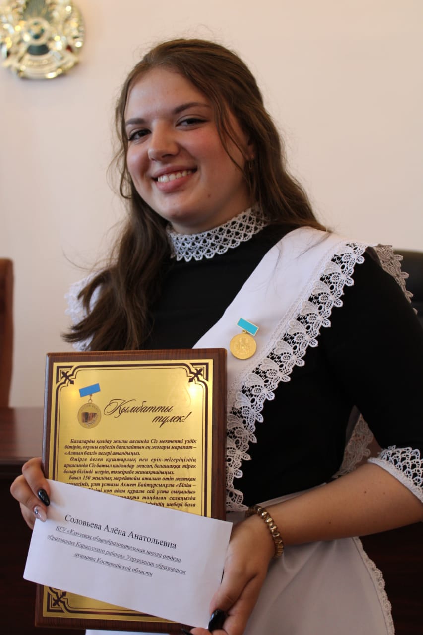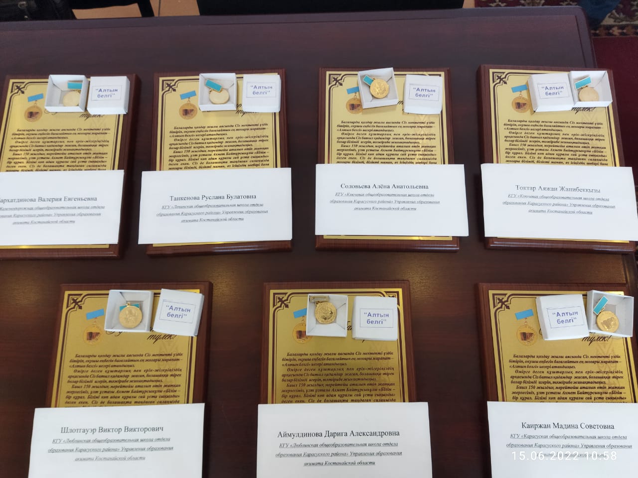 «Алтын белгі» иегері атанған түлектерді Қарасу ауданының әкімі Виктор Николаевич Радченко құрмет медальдарымен, дипломдармен, сондай-ақ ақшалай сыйлықтармен марапаттады.