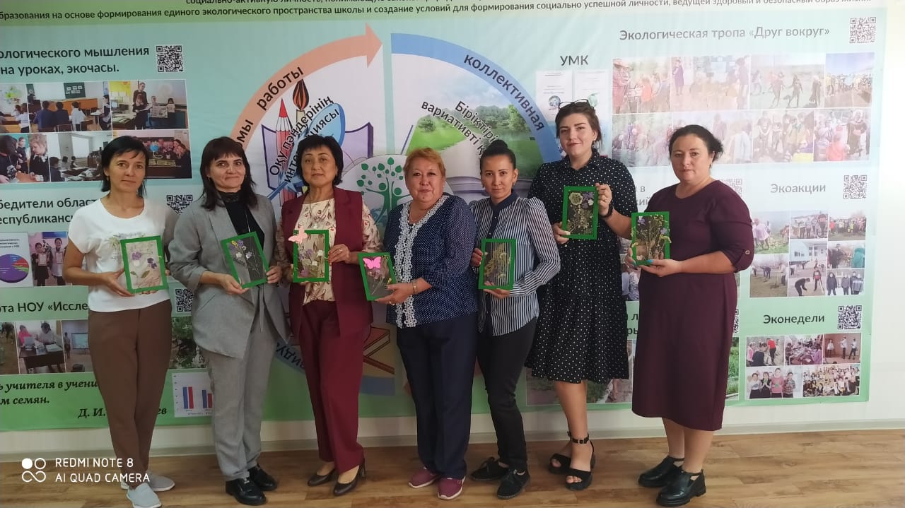 Амангелді ЖББМ мұғалімі Е.П. Лапицкая зерттеу арқылы бастауыш сынып оқушыларының экологиялық мәдениетін тәрбиелеу мәселелеріне арналған «Экология үшін мектеп: ойлау, зерттеу, әрекет ету» атты қызықты және мазмұнды педагогикалық шеберхананы белсенді ойын түрінде ұсынды. Лапицкая Е.П. өзінің «Көк планета»әдістемелік өнімін ұсынды. Практикалық бөлім аясында «Қызыл кітап беттеріне саяхат» компьютерлік квест ойыны ұсынылды. Соңғы кезеңде мұғалімдер «Жапырақтардағы тарих» гербарийін жасауға тікелей қатысты, сонымен қатар ескі джинси материалдарынан жасалған эко-шопперді гүлдермен безендіруге қатысты.