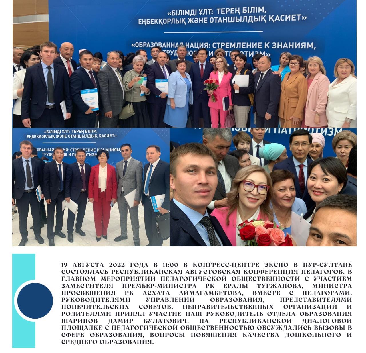 2021-2025 жылдарға арналған "Білімді ұлт "сапалы білім беру" ұлттық жобасында белгіленген міндеттерді іске асыру, білім алушыларды оқыту және тәрбиелеу үшін қажетті жағдайлар жасау мақсатында 2022-2023 оқу жылында Қарасу ауданының білім беру қызметкерлерінің "Әлеуметтік-мәдени білім беру кеңістігін қалыптастыру: балалар және сапа"тақырыбындағы тамыз кеңесі өтті. Аудандық кеңестің жұмысына аудан педагогтарымен бірге ата-аналар қоғамының, меценаттардың, үкіметтік емес ұйымдардың, бұқаралық ақпарат құралдарының өкілдері қатысты. Тамыз кеңесінің бағдарламасы көрме модулінің, пленарлық бөлімнің және секциялық сабақтардағы интерактивтердің жұмысынан тұрды. Аудан әкімі В. Н.Радченко ауданның педагогикалық қоғамдастығымен басым бағыттарды талқылап, педагогикалық қоғамдастықпен бірге жаңа оқу жылына арналған міндеттерді айқындады. "Балалар жылына" арналған білім беру витриналарының көрме модулінде "Балалар шығармашылығының аумағы" деген атаумен өз қолдарымен шағын мұражай ұсынылды: "Мың бала", "Балалық шақ әлемі", Қарасу ЖББМ; Қарасу ауданы өнер мектебінің қазақ ұлттық аспаптар ансамблі «Самға», жетекшісі Ахметханов А.Б.; балалар бейнелеу өнері шығармашылығы: "PRO-творчество", Октябрь ЖББМ; экология балалар көзімен: "Зеленая планета", Амангелді ЖББМ; балалар қолымен жасалған жасыл шарбақ: "Ботаникалық зертхана", Жалғысқан ЖББМ; мектепке дейінгі білім беру деңгейінің ұжымдық көрмесі: "Бақытты балалық шақ!", "Нұрсаби" балабақшасының балалар шығармашылығының көрмесі, конференцияға қатысушылар аудан балаларының шығармашылығымен танысты.
