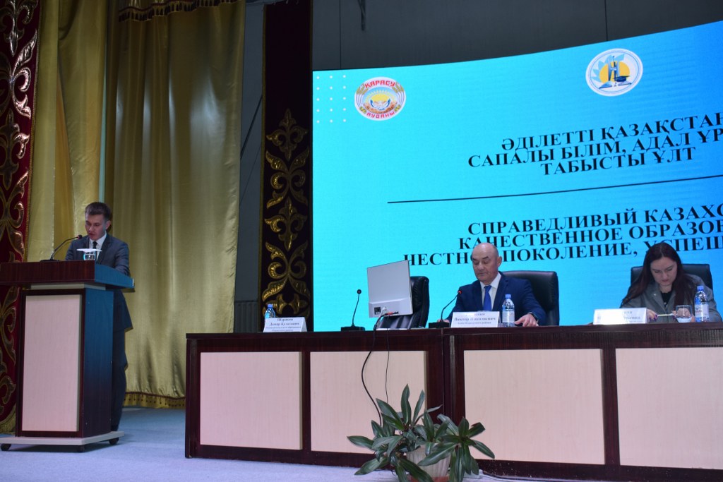 «2022-2023 оқу жылының қорытындысы және Қарасу ауданының білім беру жүйесін дамытудағы негізгі басымдықтар»тақырыбы бойынша баяндама жасады. Ол оқыту мен тәрбиелеудің тұжырымдамалық тәсілдерінің негізгі аспектілерін және ауданның білім беруді дамытудың басым бағыттарын атап өтті. Қосымша баяндамашылар: Ключевой жалпы білім беретін мектептің директоры Габдулин Хамит Валеевич «Жобалық қызмет негізінде мектеп жұмысының жүйесі, білім беру сапасын арттыру жолы ретінде», Люблин жалпы білім беретін мектебінің директоры Прокоп Анна Владимировна «Мектеп оқушыларының ерте кәсіптік бағдар беру жұмыстары арқылы агробілім беруді дамыту үшін жағдай жасау», Октябрь жалпы білім беретін мектебінің түзету сыныптарының мұғалімі .Щекотова Елена Александровна «Мектепте инклюзияның негізгі қағидаты ретінде тең мүмкіндіктерді қамтамасыз ету: стратегиялар" тақырыбында, әдістер мен тәжірибелер» тақырыптарында баяндамалармен отырысты жалғастырды.